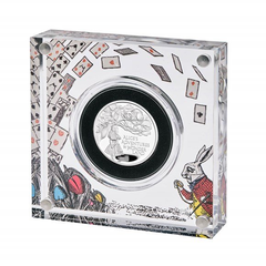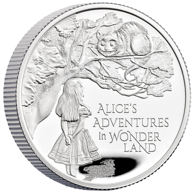 Stříbrná mince o velikosti jedné poloviny unce věnovaná nesmrtelnému příběhu Alenky v říši divů od britského autora Lewise Carolla. Je první mincí ze 2-dílné série.