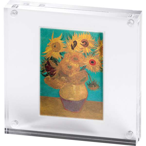 Tato exkluzivní mince ze série Art Gallery zachycuje pulzující energii jednoho z nejznámějších a nejobdivovanějších děl světového umění – obrazu Slunečnice od Vincenta van Gogha. Zářivé odstíny žluté a výrazné tahy štětce proměňují prostou kytici v symbol vitality, tepla a jedinečné umělecké vize.