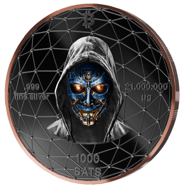 Váží 21 gramů ryzího stříbra (což odpovídá 21 000 000 mikrogramů, což je hodnota odpovídající maximální zásobě 21 milionů bitcoinů). Tyto mince jsou cenným sběratelským artiklem, který symbolicky zachycuje význam Bitcoinu a technologie blockchain.