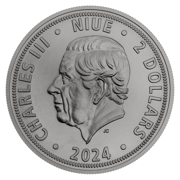 Reverzní straně mince vévodí český lev v realistickém podání, který má na hlavě Svatováclavskou korunu. Doplňkovým motivem je orlice, jež je syntézou svatováclavského, moravského a slezského dravce. Nápis ČESKÁ REPUBLIKA je umístěn do klínu, který evokuje českou vlajku. Protože mince vycházejí v licenci zahraničního emitenta, kterým je ostrov Niue, jejich averzní strana nese jeho nezbytné atributy – portrét krále Karla III., nominální hodnotu 2 DOLLARS (NZD) a rok emise 2024.