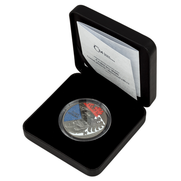Stříbrná mince velikosti jedné unce ze série věnované jednomu ze státních symbolů České republiky - Český lev pro rok 2024. Krásu stříbrné mince s ročníkem 2024 podtrhuje hned dvojí povrchová úprava. Pokovení nevšední černou platinou doprovází třpytivý diamantový efekt.