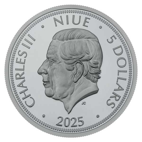 Reverzní straně mince vévodí řvoucí český lev v realistickém podání, který má na hlavě Svatováclavskou korunu. Doplňkovým motivem vysokého reliéfu je orlice, jež je syntézou svatováclavského, moravského a slezského dravce, a česká vlajka. Autorem reliéfu je již tradičně medailér Asamat Baltaev, DiS. Protože mince vycházejí v licenci zahraničního emitenta, kterým je ostrov Niue, jejich averzní strana nese jeho nezbytné atributy – portrét krále Karla III., nominální hodnotu 5 DOLLARS (NZD) a rok emise 2025.
