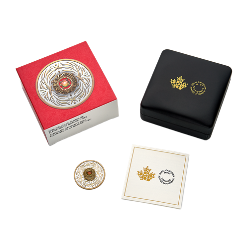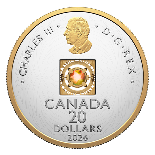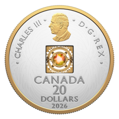 Ammolite je jedním z nejcennějších organických drahokamů na světě, těžený výhradně na území kanadské Alberty. Jeho charakteristická duha barev vzniká lomem světla v tenounké vrstvě zkamenělých schránek druhohorních mlžů rodu Placenticeras. Série Elements of Nature představuje každý rok jeden ze živlů přírody a ammolite, svým původem hluboce spjatý s kanadskou zemí, je pro toto téma naprosto přirozenou volbou. Každý kámen je zcela jedinečný – žádné dvě mince tak nejsou totožné.