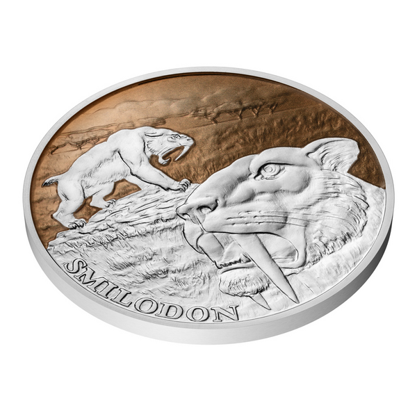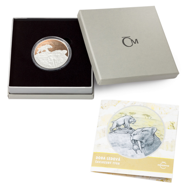 Třetí stříbrná mince z cyklu Doba ledová je věnována obávaným šavlozubým tygrům.