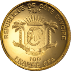 Na averzní straně obou mincí je zobrazen státní znak Republiky Pobřeží slonoviny s hlavou slona, palmami a vycházejícím sluncem. Motiv doplňují nápisy „RÉPUBLIQUE DE CÔTE D’IVOIRE“, nominální hodnota 100 FRANCS CFA a rok vydání.