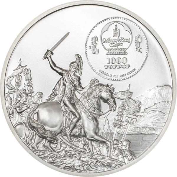 Reverzní strana mince robrazuje Caesara na koni, ve vojenské zbroji. Částečně leštěný povrch zvýrazňuje detaily jeho výstroje a dodává mu téměř nadpřirozenou přítomnost. Jeho hrdý postoj kontrastuje s tragédií, která ho čeká – design tak vyjadřuje napětí mezi mocí a osudem.
