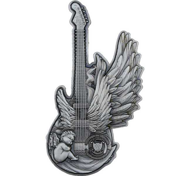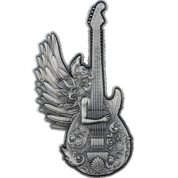Guitar of Angel 2 oz antique finish 2025 - stříbrná mince