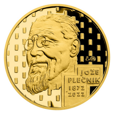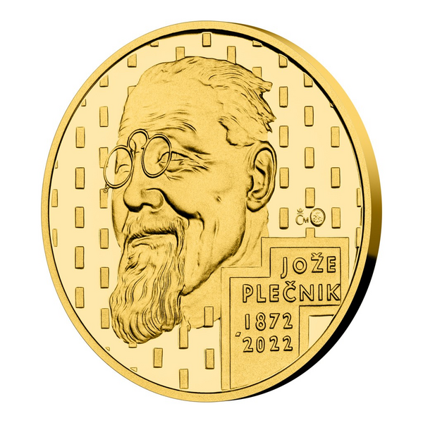 Zlatá medaile o velikosti jedné poloviny unce připomínající 150. výročí narození Jože Plečnika, které si v roce 2022 připomínáme. Jože Plečnik zanechal nesmazatelnou stopu v československé architektuře.