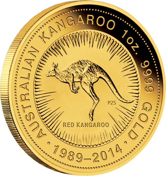 Australská jednouncová výroční investiční zlatá mince Australian Kangaroo nesoucí motiv australského klokana obsahuje speciální mincovní značku „P25“ a nápis „1989-2014“. Je vyražena z ryzího zlata 999,9/1000 a je vydána jako zákonné platidlo podle australského Zákona o měně z roku 1965.