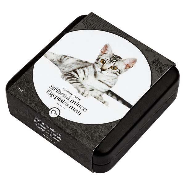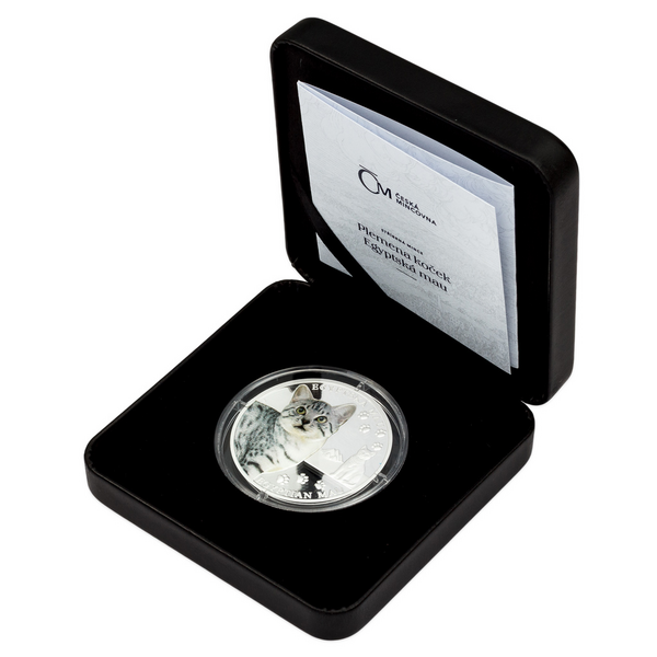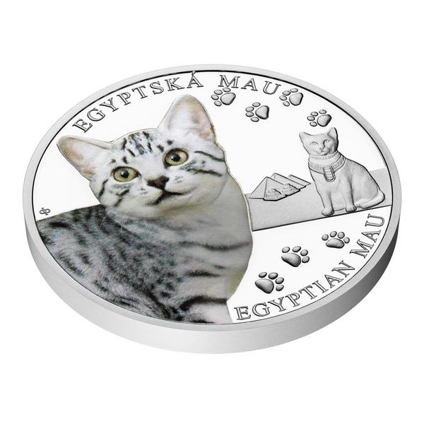 Na osmé stříbrné minci z cyklu Plemena koček se objevuje egyptská mau.