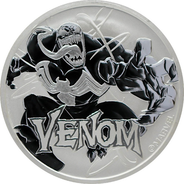 Na rubové straně mince vidíme postavu Venom. V spodní části mince je uvedeno jméno hrdiny a také název celé sady: Marvel.. Lícová strana mince zachycuje podobiznu královny Alžběty II. od uznávaného rytce Iana Rank-Broadleyho. Nechybí ani bližší specifikace mince – země emitenta, nominální hodnota, rok ražby a údaj o ryzosti a hmotnosti. Náklad této emise je 50 000 kusů pro celý svět!