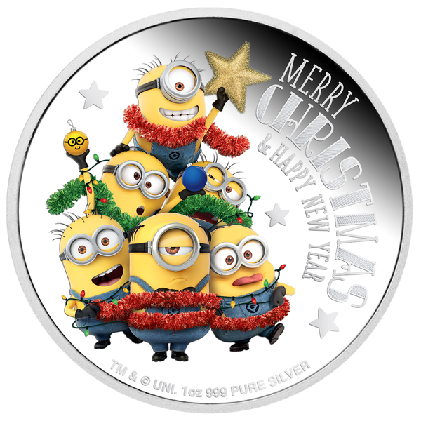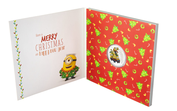 Na rubové straně mince se nachází šest rozpustilých mimoňů, kteří slaví vánoční svátky. Čiší z nich dobrá a veselá nálada. A i oni přejí všem krásné svátky a vše nejlepší do nového roku, jak lze vyčíst z anglického nápisu. Lícová strana zachycuje královnu Spojeného království Alžbětu II. Nechybí ani nápis ELIZABETH II, název země emitenta, rok ražby a výše nominální hodnoty.