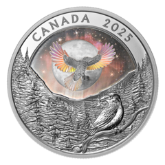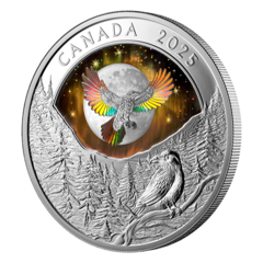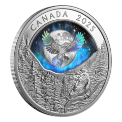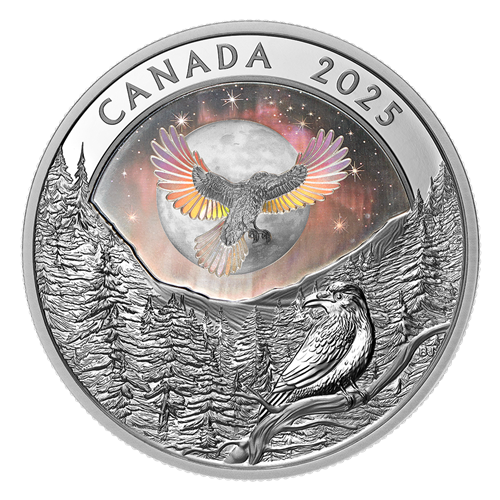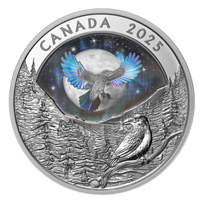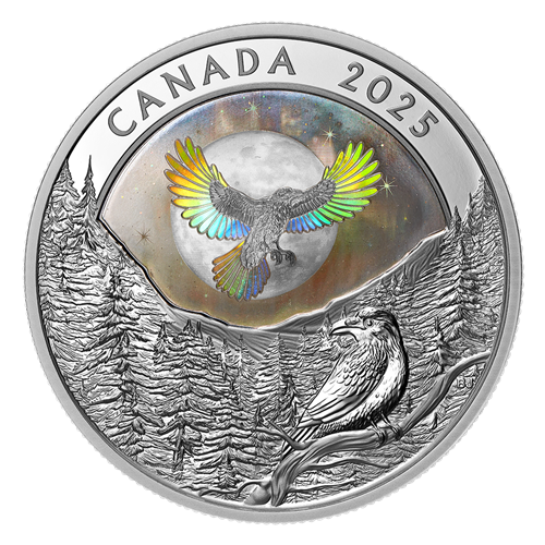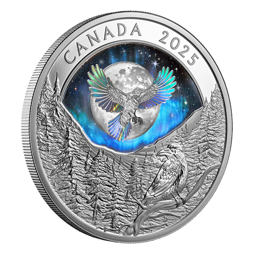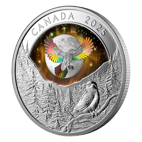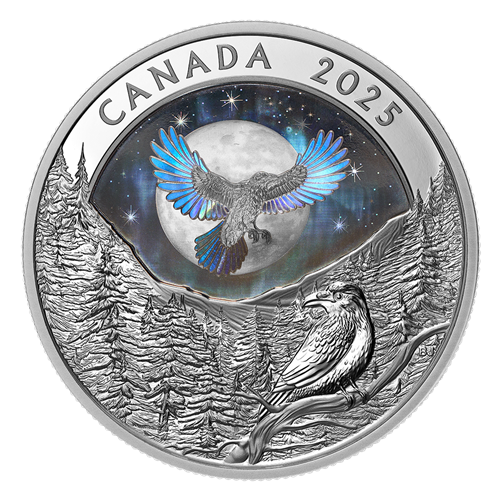 Tuto exkluzivní minci vydává prestižní Royal Canadian Mint. Jedná se zatím o jedinou holografickou minci této ražby v roce 2025. Holografický efekt rozzáří havraní peří a dodává jemnou záři detailnímu zobrazení Měsíce, čímž vytváří mnohobarevnou noční oblohu inspirovanou polární září. Mince je poctou inuitským legendám a zároveň moderní uměleckou interpretací silného symbolu příběhů, tajemství a světla.