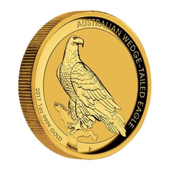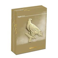 Zlatá mince o velikosti jedné unce v provedení vysoký reliéf. Vydaná australskou mincovnou v Perthu jako další emise tradiční sběratelské sady s orlem klínoocasým („Wedge Tail Eagle“), která vychází od roku 2014. Motiv orla se na minci každý rok mění.