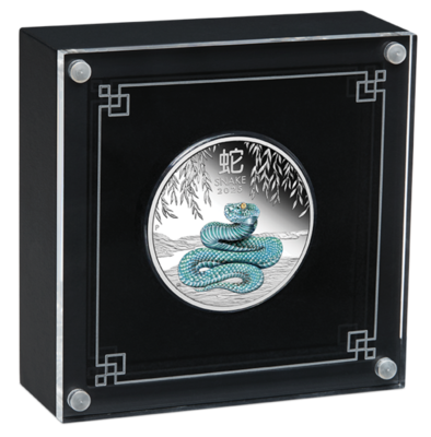 Stříbrná kolorovaná mince v kvalitě proof z Lunární série III pro rok 2025 – Rok Hada vydaná australskou mincovnou T… Zobrazit více