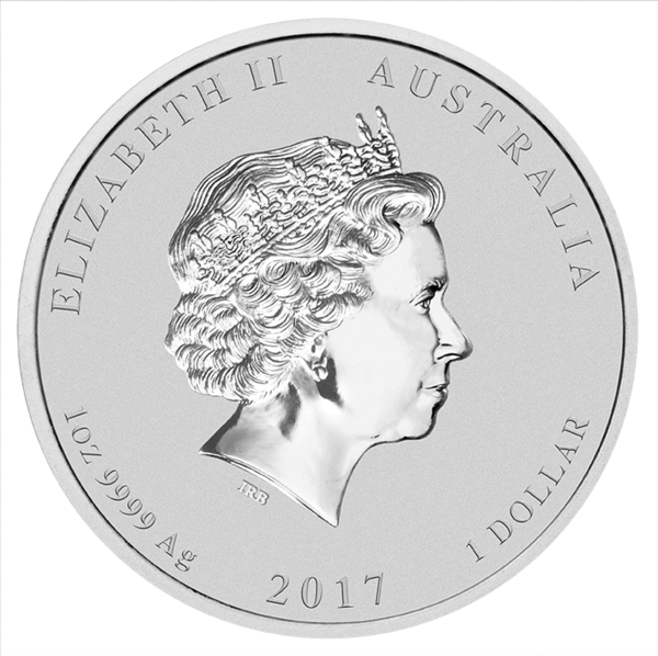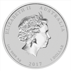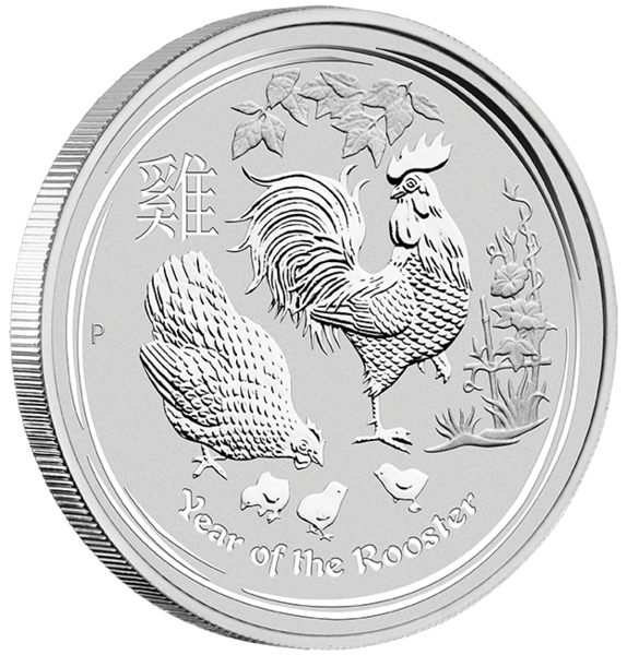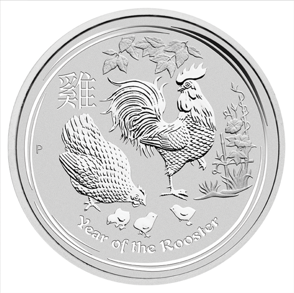 Uncová stříbrná mince z Lunární série pro rok 2017 – Rok Kohouta, která pochází z australské mincovny The Perth Mint.