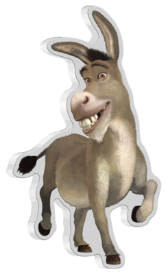 Mince je ve tvaru nejvěrnějšího Shrekova kamaráda - Oslíka. Reverz mince je kolorovaný a na averzu jsou uvedeny standardní atributy mince - portrét Jejího veličenstva Královny Alžběty II., název země emitenta, rok emise a ryzost mince.