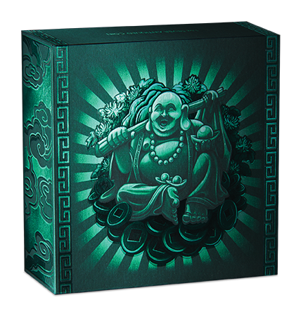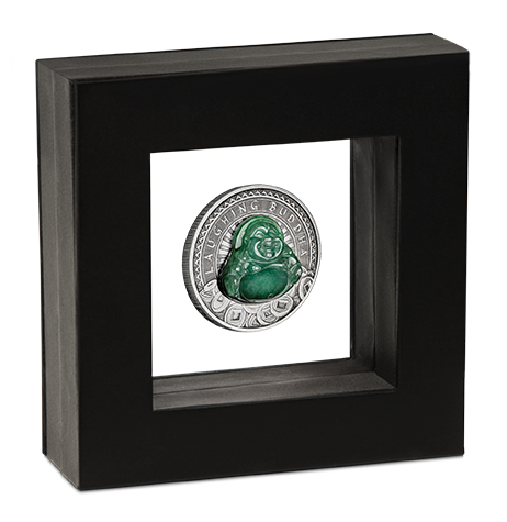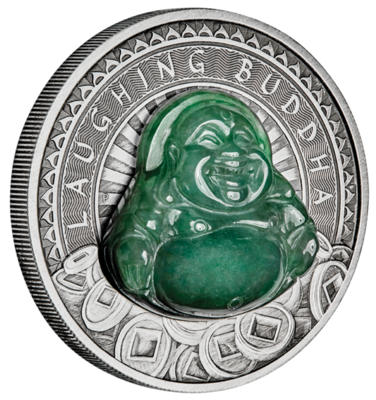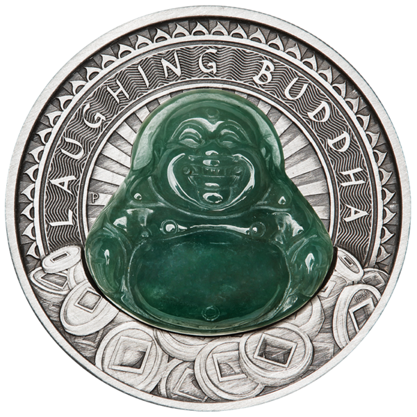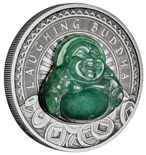 Australská mincovna The Perth Mint vydala první inovativní uncovou stříbrnou minci v kvalitě antique finish, která obsahuje "sošku" smějícího se Buddhy vyrobenou z nefritu. Tento kámen tradičně v čínské kultuře symbolizuje krásu, čistotu a ctnost. Smějící se Buddha je buddhistická postava často ztvárněna v sochách, o nichž se traduje, že přináší štěstí a jmění.