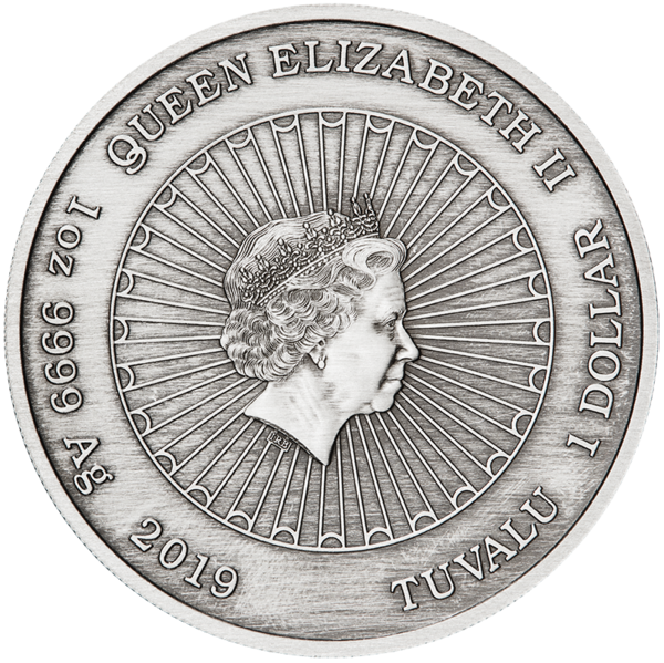 Rubová strana mince zobrazuje legendární postavu Buddhy sedícího na kopci mincí symbolizující prosperitou a hojnost. Na pozadí jsou znázorněny paprsky slunečního světla. Součástí návrhu je také nápis „LAUGHING BUDDHA“, vzorované ohraničení a značka mincovny „Perth Mint“ „P“. Na lícové straně mince je znázorněna podobizna její Veličenstva královny Alžběty II. uprostřed paprsků, nechybí ani rok ražby 2019, váha, ryzost a nominální hodnota.