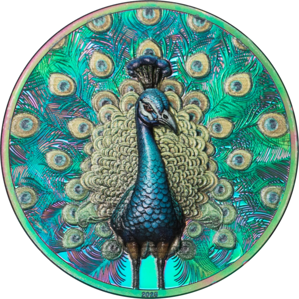 Máloco v přírodě zaujme tak jako okamžik, kdy páv rozevře své nádherně zbarvené peří. Právě tuto fascinující podívanou zachycuje stříbrná mince Spectrum – Peacock. Jedná se o výjimečný sběratelský kousek, který spojuje špičkovou mincovní technologii s estetickou dokonalostí.