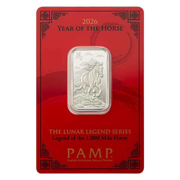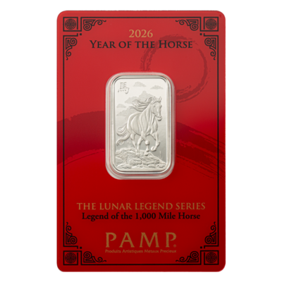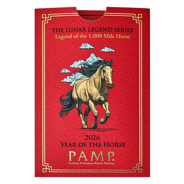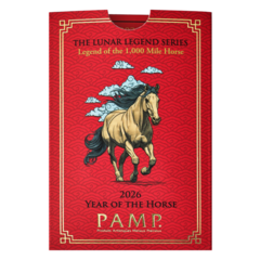 Tento slitek od slévárny PAMP je třetím vydáním série ražených slitků Lunar Legends, které vyprávějí legendární příběhy spojené s 12 zvířaty čínského lunárního kalendáře. V roce 2026 přináší příběh Koně. Mytický Kůň tisíce li (v angličtině často poeticky uváděn jako „1,000 Mile Horse“) je legenda čínského folkloru. Jednotka li tradičně označuje čínskou vzdálenost – tisíc li představuje zhruba 500 km, tedy impozantní trasu, kterou měl tento výjimečný kůň zvládnout za jediný den. Symbolizuje mimořádnou sílu, odhodlání a skrytý potenciál, který čeká na svého znalce.