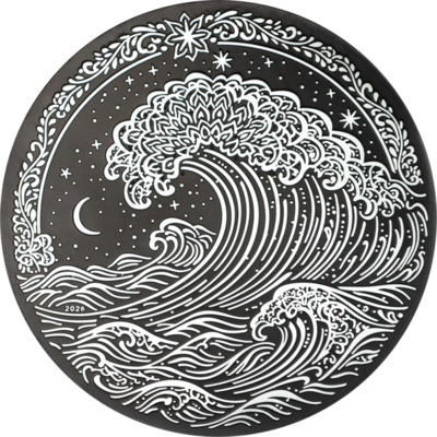 Tato jedinečná mince představuje moderní numismatický klenot, který v sobě spojuje mistrovské řemeslo, minimalistickou eleganci a ikonickou inspiraci japonským uměním. Ražená z jedné trojské unce ryzího stříbra s výjimečnou obsidiánově černou povrchovou úpravou Nanoshine vytváří dojem luxusního sběratelského artefaktu, jehož motiv vychází ze slavné dřevořezy „Velká vlna u Kanagawy“.