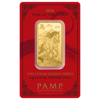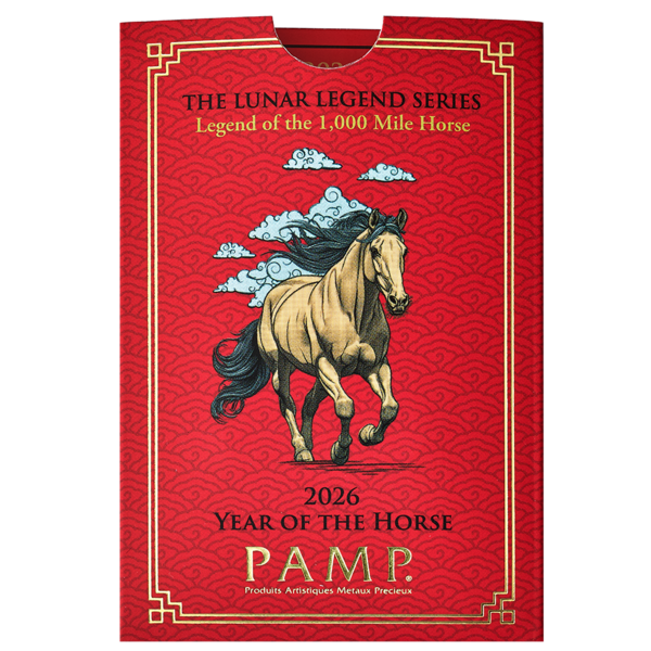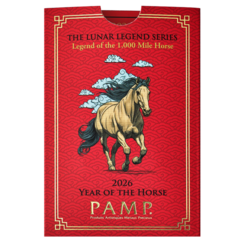 Tento slitek od slévárny PAMP je třetím vydáním série ražených slitků Lunar Legends, které vyprávějí legendární příběhy spojené s 12 zvířaty čínského lunárního kalendáře. V roce 2026 přináší příběh Koně. Mytický Kůň tisíce li (v angličtině často poeticky uváděn jako „1,000 Mile Horse“) je legenda čínského folkloru. Jednotka li tradičně označuje čínskou vzdálenost – tisíc li představuje zhruba 500 km, tedy impozantní trasu, kterou měl tento výjimečný kůň zvládnout za jediný den. Symbolizuje mimořádnou sílu, odhodlání a skrytý potenciál, který čeká na svého znalce.